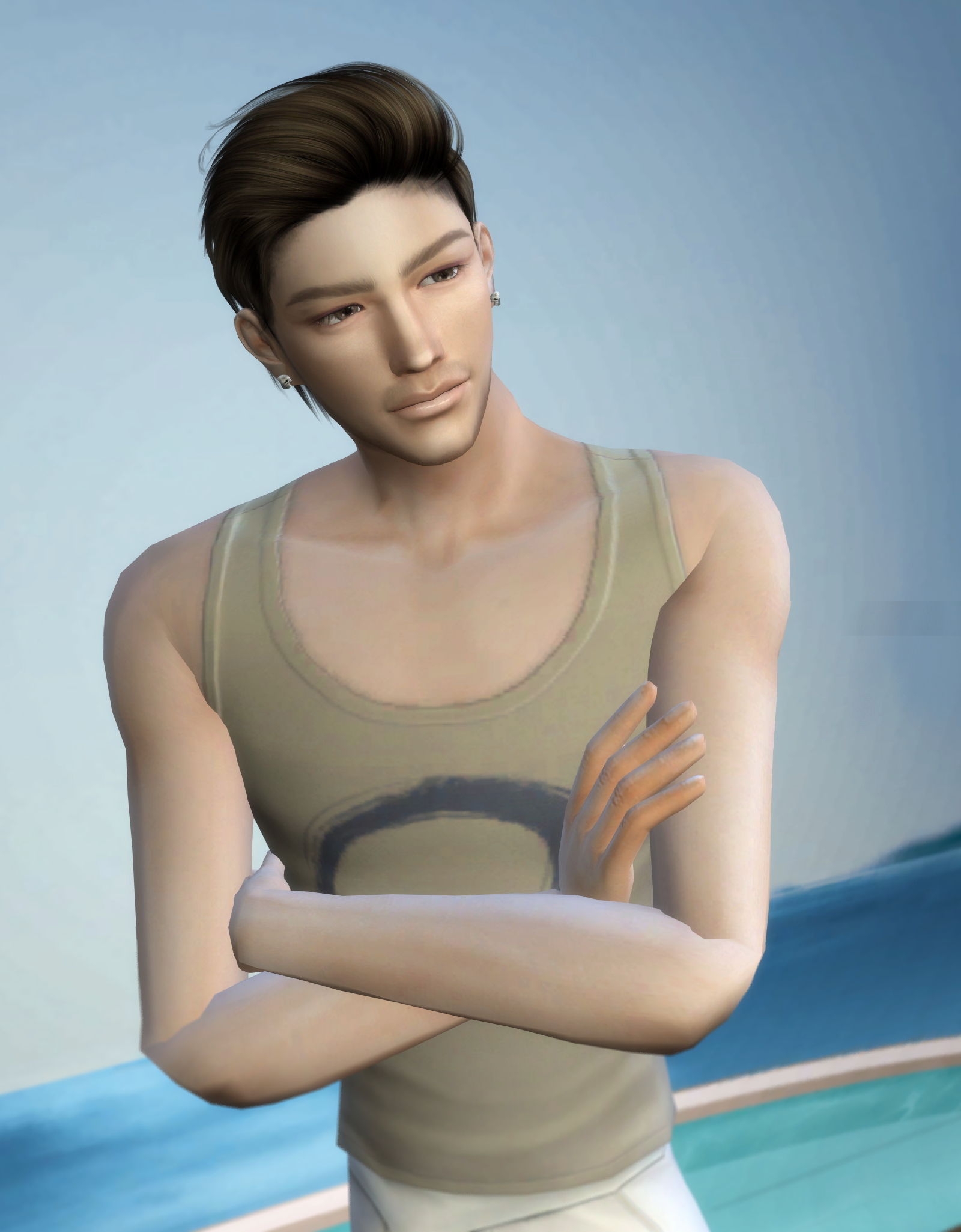 先日の温泉でスキンの色の差が目立ったので、鐘崎にもボディのスキントーンを入れてみたショット。