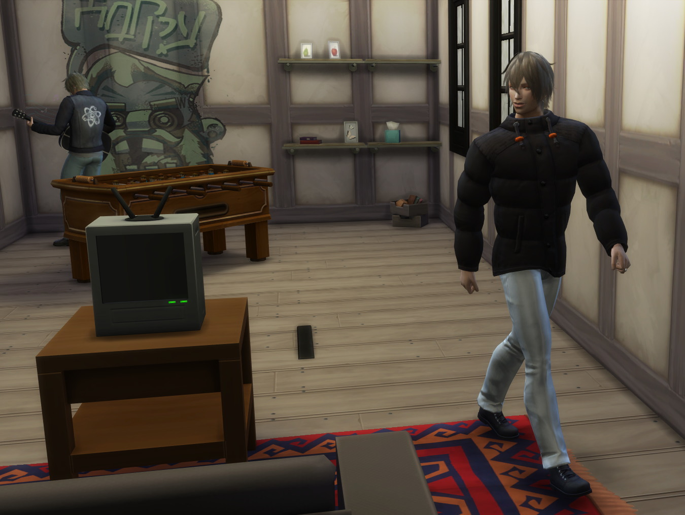 部屋の隅っこの方では、氷川がギターの練習してました!